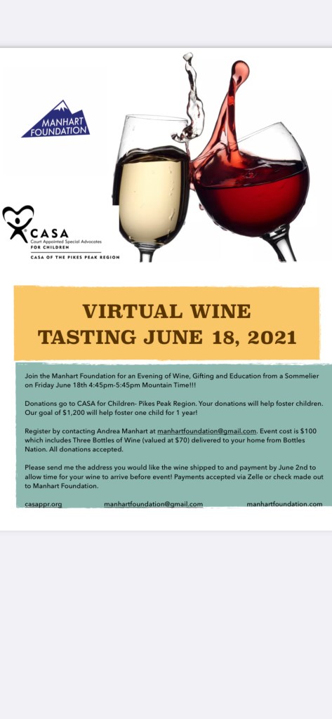 Manhart Foundation hosted a Virtual Wine Tasting to benefit CASA Colorado Springs!